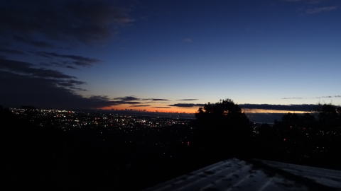 天高く 秋の空からふるさと「秋田」が夕焼けの中に見えます。
